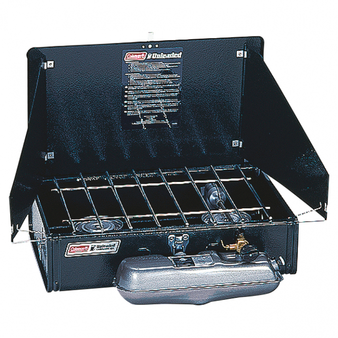 Compact 2-flame cooker. Ideal for carp, hobby and night fishing. Folds together for easy transportation and storage. The windbreak can be fixed to either side. Simple to use, practical, low energy, safe and environmentally friendly. Burning time of up to 6 hours. Power: 4,100 watts. To be used with lead free petroleum or Coleman Fuel, article 54321. Weight: 4.5kg. Dimensions: 46 x 29 x 12 cm when folded.
