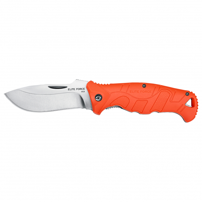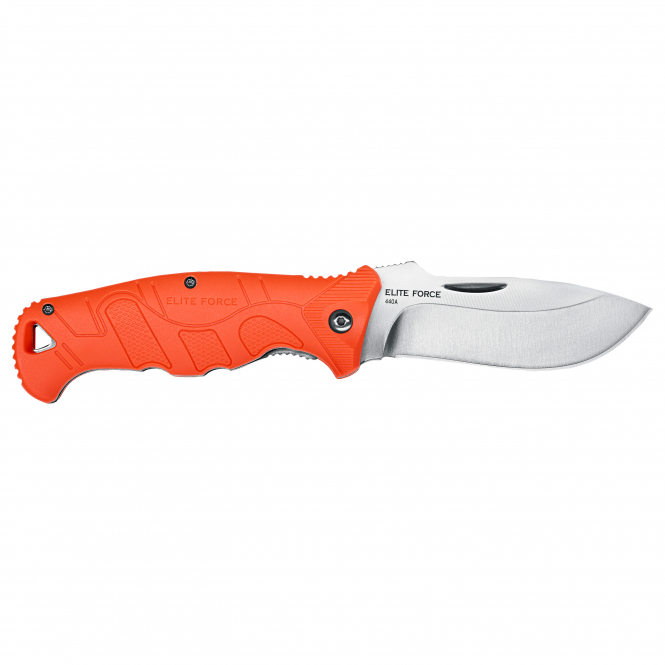 An outdoor and hunting knife with polymer handle scales. The bulbous 440A blade is equipped with a nail hammer for two-handed opening. Blade length: 8.6 cm, total: 21.2 cm. Weight: 187 g.