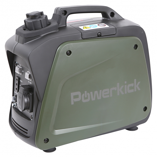 Powerkick 800 Outdoor is, as the name suggests, made for outdoor use or even the hunting lodge. This generator is made in a dark green version. The “Powerkick 800 Outdoor” is ideal for charging cell phones, laptops, iPads and batteries that do not exceed the maximum power. The model 800 Outdoor has a 4-stroke 40 cc engine, which provides a maximum of 800 watts at a continuous power of 8.5 kg. The gasoline tank has a capacity of 2.1 liters. This allows the generator to run for more than 4 hours. The 800 model uses the latest inverter technology (the engine speed is automatically adjusted by reducing the wattage). Partly because of this, we can produce ultra-quiet generators with a noise standard of 58 dB at a distance of 7 meters.