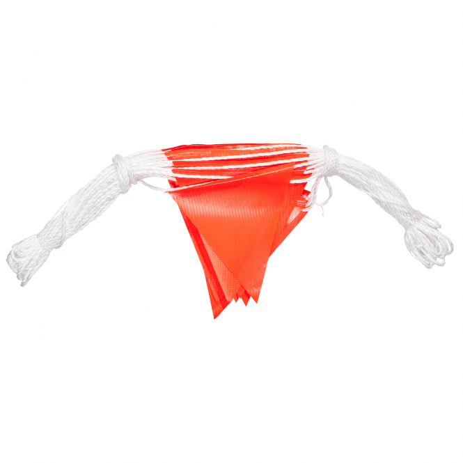 Important equipment for the safe conduct of driven hunts. A more than 30 m long nylon rope has been equipped with 45 signal orange warning pennants. Of the pennants, 15 are each printed with the words “Danger!” and “Hunt!”, another 15 are unprinted. This warning rope is ideal to close forest paths for walkers, cyclists and riders.