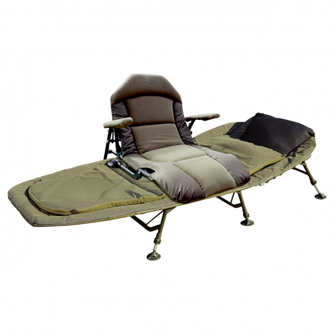 Padded Carp Chair with mud feet. The front legs are adjustable from 20 – 27 cm. Load capacity: 100 kg. Seat approx.: 33 x 53 cm, backrest approx.: 50 x 50 cm. Seat height approx.: 30 cm. Weight: 4,89 kg. Material cover: 100 % polyester.
