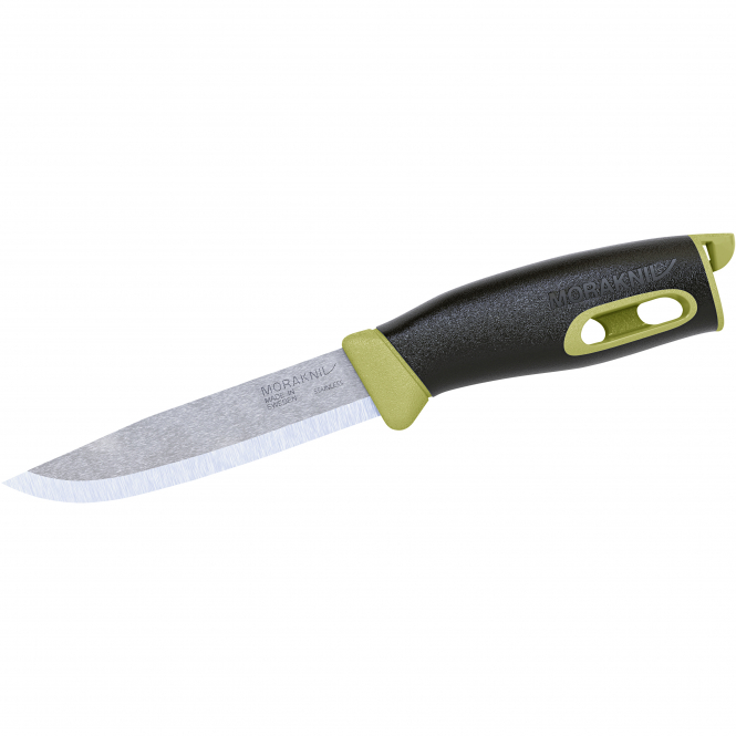 This is an outdoor knife with integrated fire starter when you need a reliable companion for your next adventure. The recycled Swedish stainless steel blade has a long lasting sharpness.