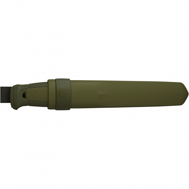 The ergonomic, barrel-shaped polymer handle features a soft friction grip, finger guard and a 2.5mm thick, profile-ground recycled Swedish stainless steel blade that provides both strength and stability with every cut. The blade and handle design make this knife ideal for working safely and efficiently in a variety of weather conditions during all seasons of the hunt. The polymer knife sheath is symmetrical, meaning it is suitable for both right- and left-handed users, and features a leather strap made of Swedish vegetable-tanned leather that easily attaches to the belt. The Morakniv Multi-Mount is MOLLE compatible and offers a variety of attachment options with Velcro straps, bars, holes and notches. The sky is the limit. The Morakniv Multi-Mount Kit is compatible with the Survival Kit for Kansbol/Garberg.