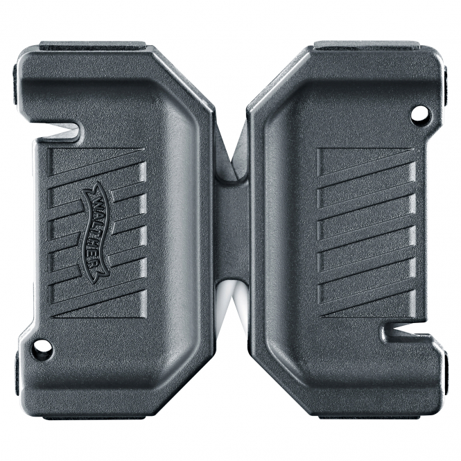 A reliable knife sharpener with 50° for outdoor knifes and 34° for fine blades. Length: 7 cm, weight: 36 g.