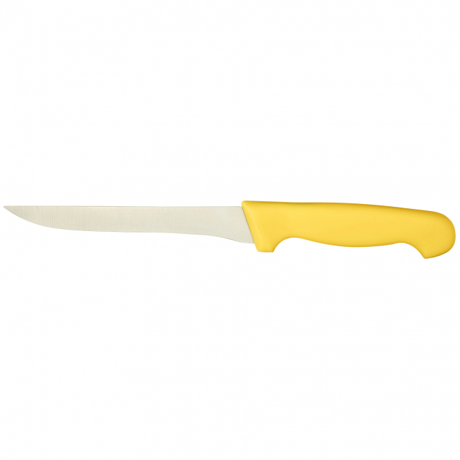 Bone knife to trigger bone clean, without damaging the valuable meat too much. With ergonomic plastic handle. Blade: 16 cm Total: 29 cm.