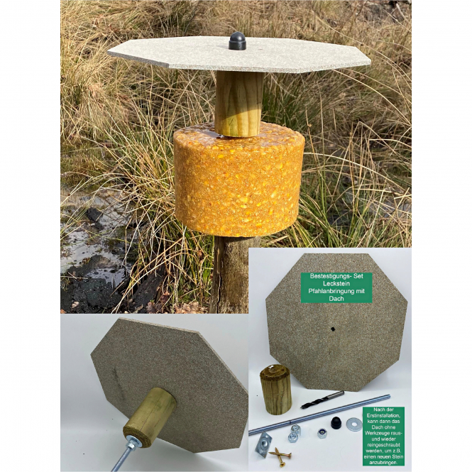 With this set you can build a permanent mounting for lickstones. Dimensions: 42 x 31 cm. Incl. mounting material and instructions.